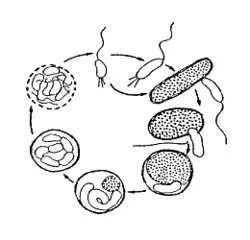 Las Bdellovibrionales son deltaproteobacterias que suelen actuar como bacterias depredadoras al adherirse y penetrar en otras bacterias. El prefijo Bdello en griego significa "sanguijuela".