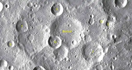 Es un sistema de cráteres desgastado, erosionado con algunos pequeños impactos que se extienden a través del suelo y del borde. Una formación de doble cráter ocupa el borde sudoeste, con Bečvář Q que forma el elemento noroccidental de esta pareja. El cráter Bečvář X está unido al borde norte.