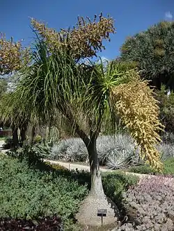 Es una planta arborescente de 6 a 10 m de alto. Tallos de 1 a 2 m de diámetro, base ensanchada, cónica, corteza gruesa, pardo-grisácea; ramas robustas, poco ramificadas.