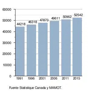 b. Statistique Canada. 2002. Profils des communautés de 2001. Beauce-Sartigan (Código 2429), Ottawa. No. 93F0053XIF al catálogo de Statistique Canada. Difundido el 27 de junio de 2002; modificado el 30 de noviembre de 2005. Consultado el 6 de marzo de 2015. (en francés).