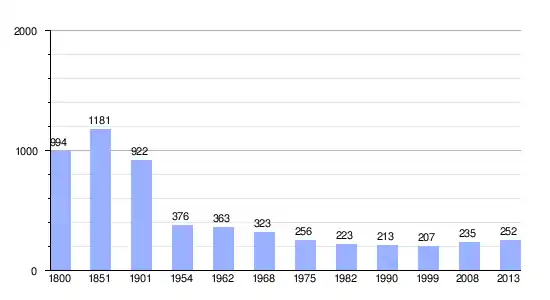 Gráfica de evolución demográfica de Beauchêne entre 1800 y 2013 |