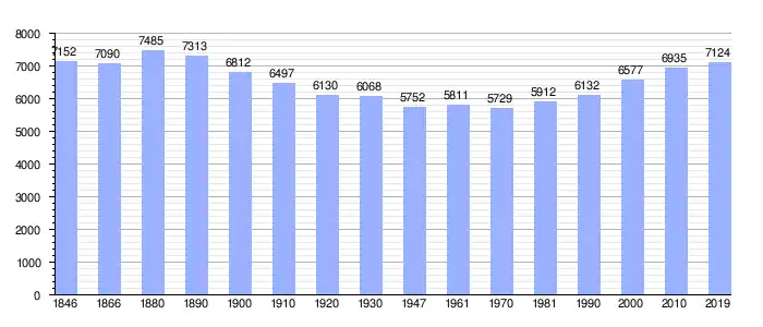 Todos los datos históricos relativos al actual municipio, el siguiente gráfico refleja su evolución demográfica, incluyendo municipios después de efectuada la fusión el 1 de enero de 1977.
