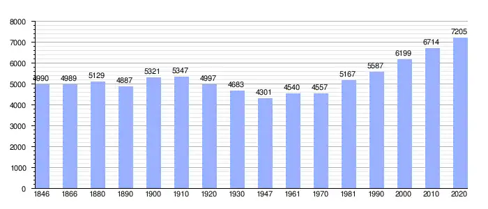 Todos los datos históricos relativos al actual municipio, el siguiente gráfico refleja su evolución demográfica, incluyendo municipios después de efectuada la fusión el 1 de enero de 1977.