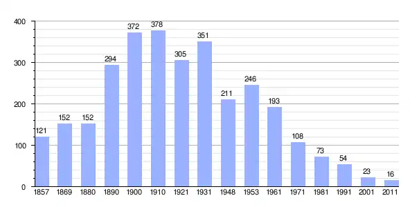 Gráfica de población de Bedenička 1857-2011 |