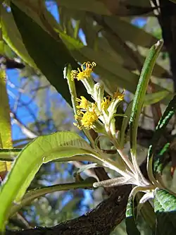 Bedfordia salicina es un pequeño árbol que sólo se encuentra en Tasmania. Pertenece a la misma familia que las margaritas. Por lo general se encuentra creciendo como un árbol equeño debajo de los eucaliptos de altura, sin embargo, también crece en forma de arbusto en los acantilados rocosos secos. Sus hojas son suaves y lanosas. Produce flores amarillas en noviembre. Tanto sus hojas como sus flores son fragantes.[1]