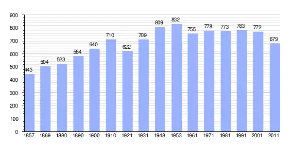 Gráfica de población de Bednja 1857-2011 (localidad) |