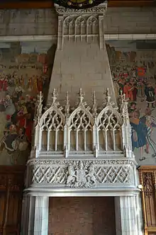 Chimenea de piedra blanca del Gran Salón de Honor del Ayuntamiento, contigua al beffroi, reconstruida después de la Primera Guerra Mundial