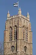 La torre, de una altura de 58 metros, está construida en ladrillo en estilo gótico. Estaba asociado originalmente a la iglesia de San Eligio y servía como su campanario. En 1558, los franceses dirigidos por el mariscal Thermes ocuparon la ciudad y quemaron la iglesia. Sólo quedó la torre. La reconstrucción de la iglesia comenzó en 1560 bajo la dirección del maestro de obras Jean de Renneville pero, falto de recursos, los trabajos se interrumpieron en 1585. La antigua torre, separada de la nueva iglesia por una parte de las ruinas la primera iglesia, permaneció aislada y sirvió a la vez de campanario, beffroi municipal, y armería. El proyecto original nunca se terminará.