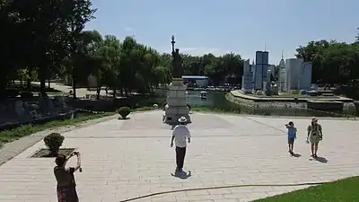 La entrada al parque está conformada por un castillo gótico, un pasillo romano y esculturas en relieve hechas de granito. Inmediatamente tras la puerta de acceso está un jardín de estilo italiano con grandes escalinatas, fuentes y esculturas, todo ello inspirado en obras similares del Renacimiento.[1] Dispersos por todo el parque hay jardines y prados con réplicas en miniatura de aproximadamente 100 estatuas famosas, entre ellas la Estatua de la Libertad, la Sirenita de Copenhague, el David de Miguel Ángel y la Venus de Milo.[2] Una vez dentro de las puertas, el parque está conformado por 2 partes principales: el área escénica y el área de compras, comidas y entretenimiento.