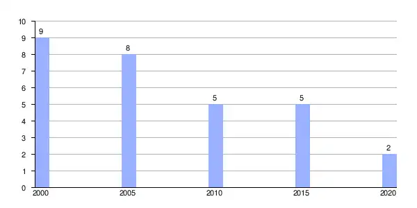 Gráfica de evolución demográfica de Beirán entre 2000 y 2020 |