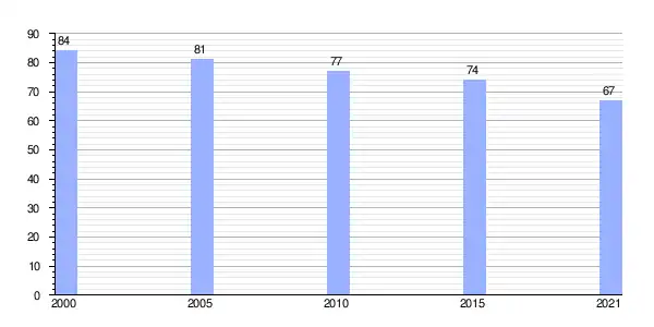 Gráfica de evolución demográfica de Belante entre 2000 y 2021 |