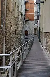 Tras su fundación y hasta el siglo XV, el Burgo de San Cernin, uno de las tres núcleos de población que darían lugar a la ciudad de Pamplona, estaba rodeado de una muralla que dejaba el este un barranco que vertía sus aguas al río Arga. El Privilegio de la Unión por el que el rey Carlos III el Noble unificó en 1423 esos tres núcleos -la Navarrería, el Burgo de Sn Cernin y la Población de san Nilolás- se refiere a ese barranco (foso, escribe) al explicar el lugar dónde debería situarse la casa Consistorial.de la ciudad: