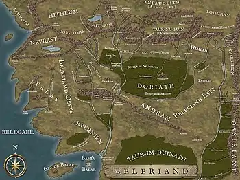 Beleriand es un lugar ficticio perteneciente al legendarium del escritor británico J. R. R. Tolkien, y que aparece en su novela El Silmarillion. En esta se cuenta la historia de las primeras edades de la Tierra Media en un estilo similar a los cuentos de héroes épicos de la literatura nórdica,[1] las Edda. Era un subcontinente situado al noroeste[2] de la Tierra Media durante la Primera Edad del Sol. Originalmente el nombre perteneció solo al área alrededor de la bahía de Balar, pero con el tiempo el mismo se aplicó a la región entera.