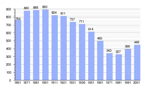 Gráfica de evolución demográfica de Belforte Monferrato entre 1861 y 2001 |