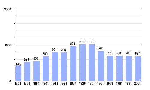 Gráfica de evolución demográfica de Belforte all'Isauro entre 1861 y 2001 |