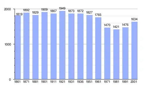 Gráfica de evolución demográfica de Belforte del Chienti entre 1861 y 2001 |