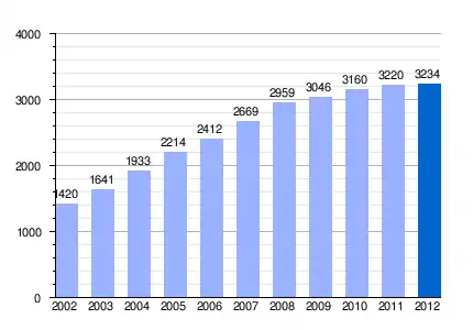 Gráfica de evolución demográfica de Belicena entre 2002 y 2012 |