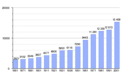 Gráfica de evolución demográfica de Bellaria-Igea Marina entre 1861 y 2001 |