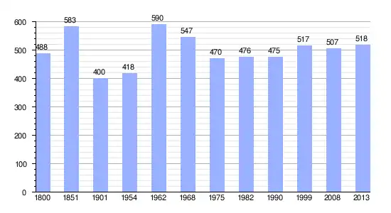 Los datos entre 1800 y 2013 son el resultado de sumar los parciales de las dos comunas que forman la nueva comuna de Belle-Vie-en-Auge, cuyos datos se han cogido de 1800 a 1999, para las comunas de Biéville-Quétiéville[4] y Saint-Loup-de-Fribois[5] de la página francesa EHESS/Cassini. Los demás datos se han cogido de la página del INSEE.[6]