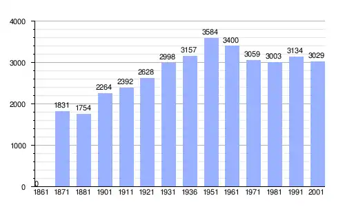 Gráfica de evolución demográfica de Bellegra entre 1861 y 2001 |