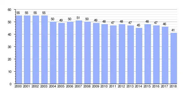 Gráfica de evolución demográfica de Belles de Abaixo entre 2000 y 2018 |