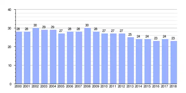 Gráfica de evolución demográfica de Belles de Arriba entre 2000 y 2018 |
