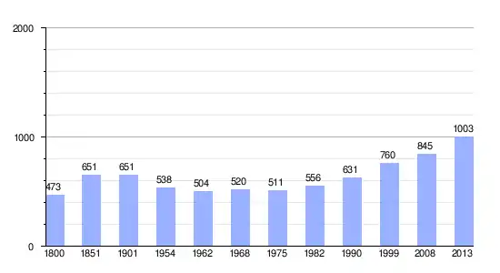 Gráfica de evolución demográfica de Bellinghem entre 1800 y 2013 |