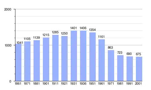 Gráfica de evolución demográfica de Belmonte Piceno entre 1861 y 2001 |