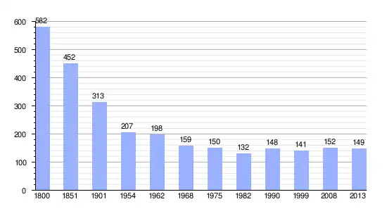 Los datos demográficos contemplados en este gráfico de la comuna de Belmontet[4] se han cogido de 1800 a 1999 de la página francesa EHESS/Cassini, y los demás datos de la página del INSEE.[5]