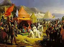 - No fue, sin embargo, cobardía lo que le retuvo, pues probará su valor en numerosas empresas en Tierra Santa. Quizá le faltaron soldados, ya que la mayoría estaban en las Cruzadas. Más curiosa es la ausencia del papa Urbano II: en efecto, Guillermo de Aquitania atacaba los bienes de un cruzado, y debió ser excomulgado por ello