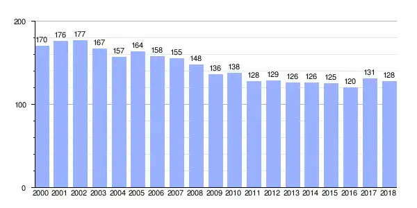 Gráfica de evolución demográfica de Beluso entre 2000 y 2018 |
