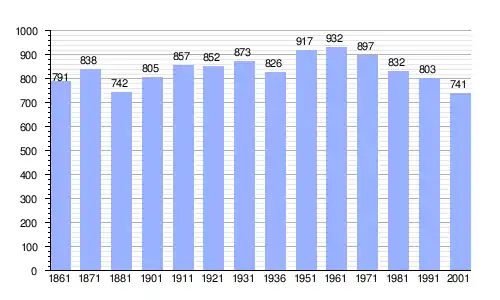 Gráfica de evolución demográfica de Belvì entre 1861 y 2001 |