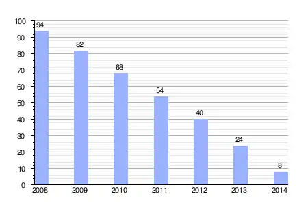 Gráfica de evolución de la deuda viva del ayuntamiento entre 2008 y 2014 |