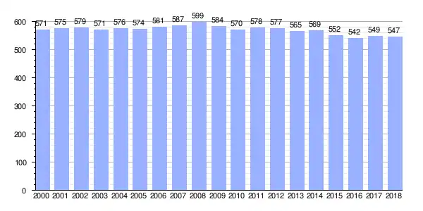Gráfica de evolución demográfica de Bemantes[4] entre 2000 y 2018 |