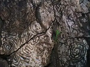 La arqueología ha establecido mediante el estudio de las diferencias en diseño y decoración de la cerámica aborigen, que a La Palma habrían llegado por lo menos dos contingentes poblaciones en diferentes momentos. Así, un primer grupo humano habría arribado a la isla hacia mediados del primer milenio antes de la era común, proveniente del Magreb occidental y el noroeste del Sahara; mientras que un segundo grupo llegó hacia el siglo vii a. C. desde el Sahara central y meridional.[8] Por otro lado, la arqueología tradicional encontraba paralelos entre los petroglifos palmeros y los de poblaciones del Bronce Antiguo de la costa atlántica europea como Bretaña o Irlanda.[1]