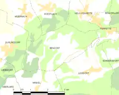 - Localisation de Bendorf y de sus comunas limítrofes en el mapa de Francia (enlace roto disponible en Internet Archive; véase el historial, la primera versión y la última).
