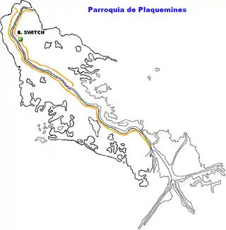 Localización de Benjamin Switch en el mapa de la Parroquia de Plaquemines.