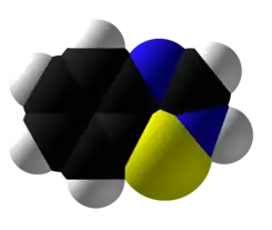 La benzotiadiazina es un compuesto heterocíclico bicíclico derivado del benceno donde el heterociclo contiene dos átomos de nitrógeno y un átomo de azufre.