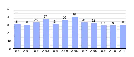 Gráfica de evolución demográfica de Beramendi entre 2000 y 2011 |