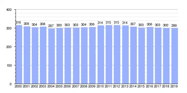 Gráfica de evolución demográfica de Berdía entre 2000 y 2019 |