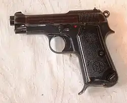 La Beretta Modelo 1934 es una pistola semiautomática compacta que fue el arma auxiliar estándar de las Fuerzas Armadas italianas durante la Segunda Guerra Mundial. Es de calibre 9 mm y dispara el cartucho 9 mm Corto, también conocido como 9 x 17 Browning Short o .380 ACP.