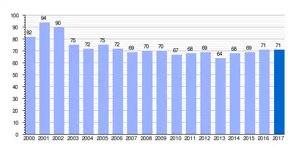 Gráfica de evolución demográfica de Bergüenda[3] entre 2000 y 2017 |