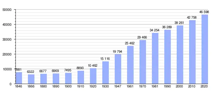Todos los datos históricos relativos al actual municipio, el siguiente gráfico refleja su evolución demográfica, incluyendo municipios después de efectuada la fusión el 1 de enero de 1977.