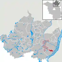 Se encuentra ubicado a la orilla oeste del río Oder que lo separa de Polonia.