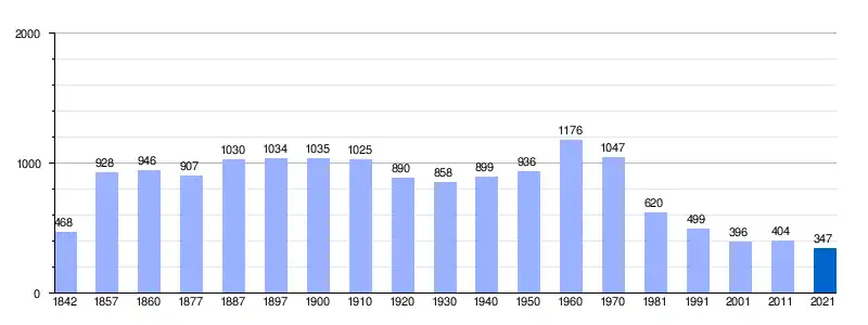 Población de derecho (1842-1991, excepto 1857 y 1860 que es población de hecho) o población residente (2001-2011) según los Censos de Población desde 1842. Población según el padrón municipal de 2021 del INE. |