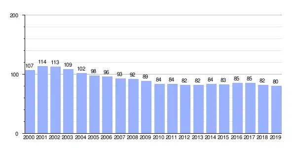 Gráfica de evolución demográfica de Bermuy entre 2000 y 2019 |