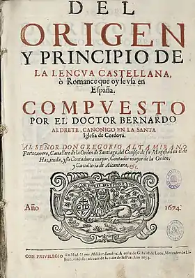 - ALDRETE, BERNARDO, Del origen y principio de la lengua castellana o romance que se usa en España, Valladolid: Editorial Maxtor, 2002, facsímil de la edición de Roma, 1606. 402 Págs. ISBN 84-9761-030-X.