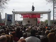 Un momento de la ceremonia de beatificación en Valladolid, con el monumento a Cristóbal Colón al fondo.