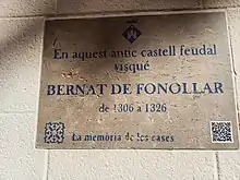 - Esta obra contiene una traducción parcial derivada de «Bernat de Fonollar» de Wikipedia en catalán, concretamente de esta versión, publicada por sus editores bajo la Licencia de documentación libre de GNU y la Licencia Creative Commons Atribución-CompartirIgual 3.0 Unported.