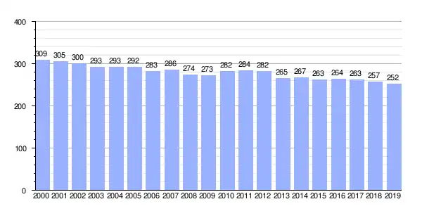 Gráfica de evolución demográfica de Berreo entre 2000 y 2019 |
